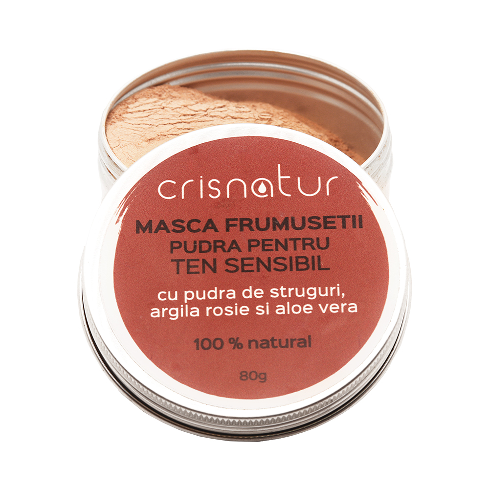 Masca naturala pentru fata cu pudra de struguri, argila rosie si aloe vera pentru ten sensibil realizat manual in Romania doar din ingrediente naturale.