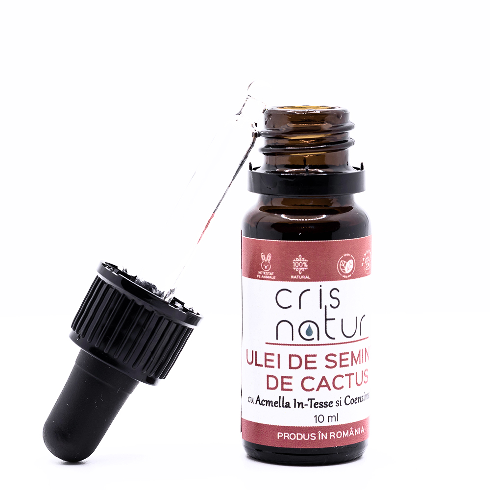 Uleiul din semințe de cactus este un ulei ușor care se absoarbe rapid în piele fără a lăsa reziduuri grase și este potrivit pentru toate tipurile de piele, inclusiv pentru pielea sensibilă. disconfortului și promovând un ten echilibrat pentru o piele cu aspect mai sănătos.