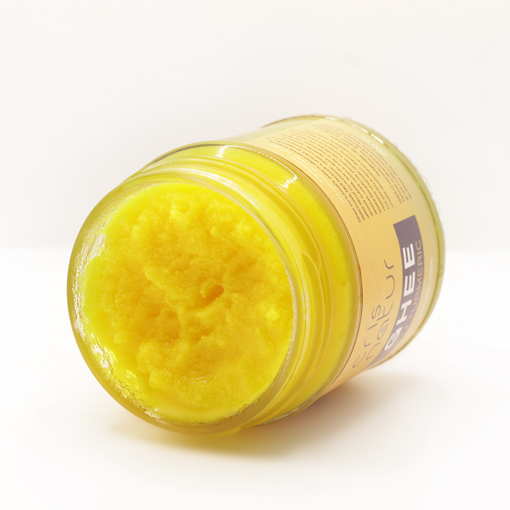 Ghee cu turmeric este o alternativă bogată, delicioasă, fără lactoză la unt și uleiuri de gătit. Ghee cu turmeric adaugă o aromă subtilă, pământească și căldură la fiecare masă. Pe lângă toate beneficiile pentru sănătate ale Ghee, turmericul este cunoscut pentru că ajută digestia, reduce inflamația și crește alcalinitatea și circulatia.