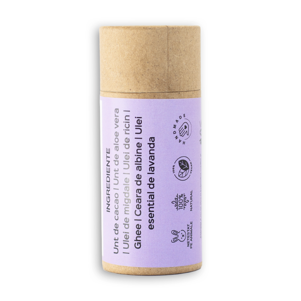 Hidratează și regenerează-ți pielea uscată cu untul de corp solid cu lavanda, 100% natural și realizat manual în România. Formulă simplă, cu ingrediente pure și eficiente, pentru o piele catifelată și sănătoasă